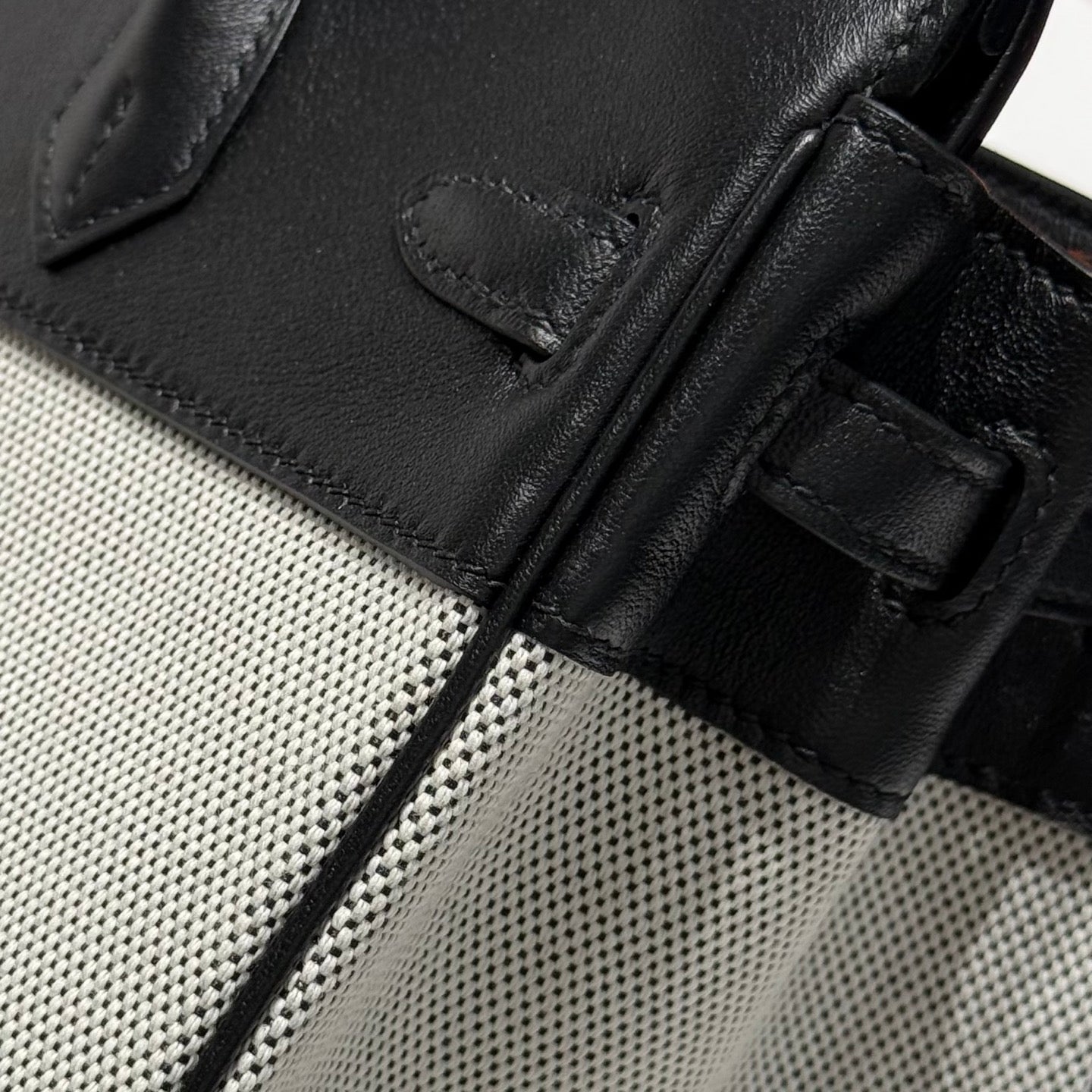 HM Birkin 25cm Black Swift Cowhide With Black White Checkered Canvas Fabric Shw 249986