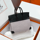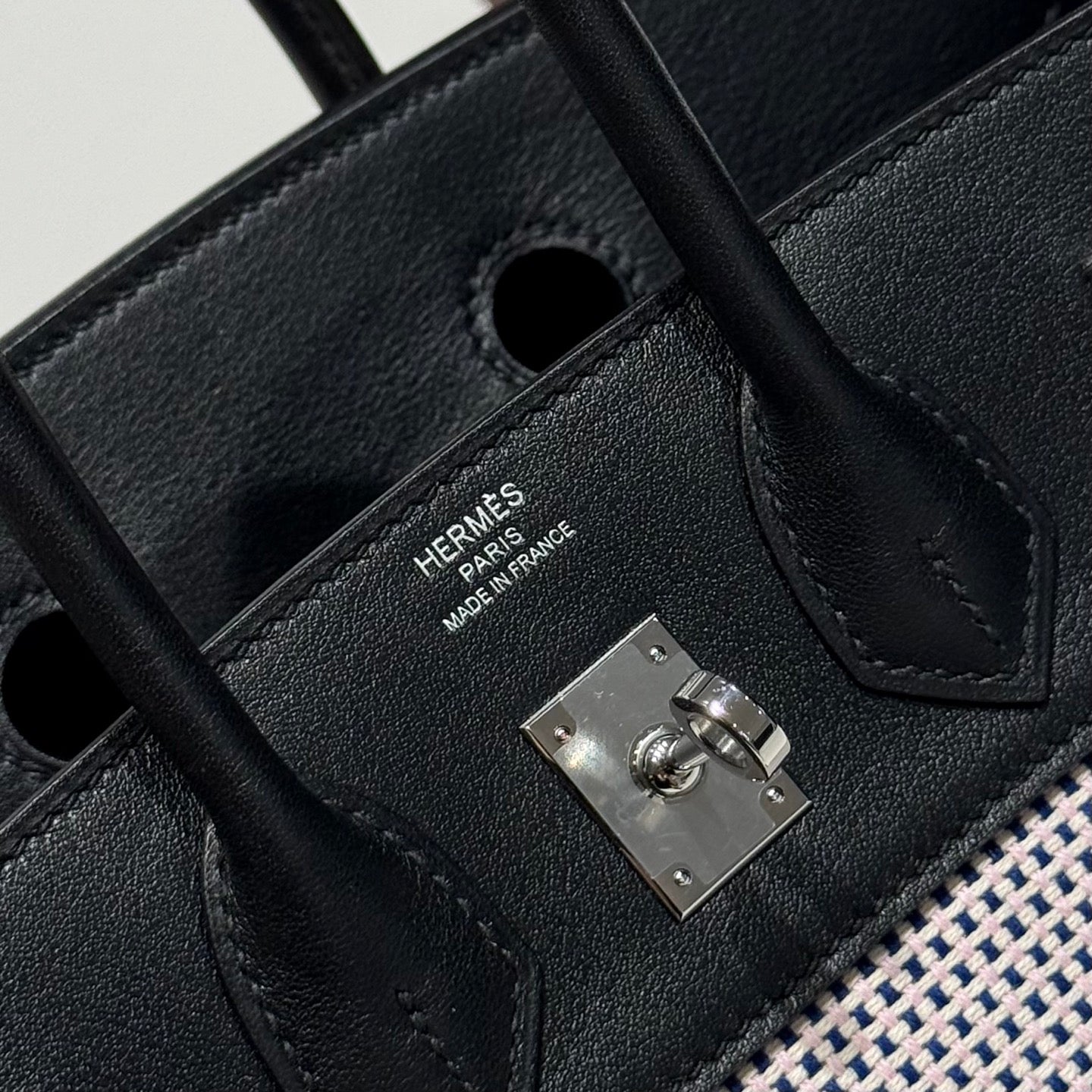 HM Birkin 25cm Black Swift Cowhide With Waffle Light Pink Canvas Fabric Shw 249984