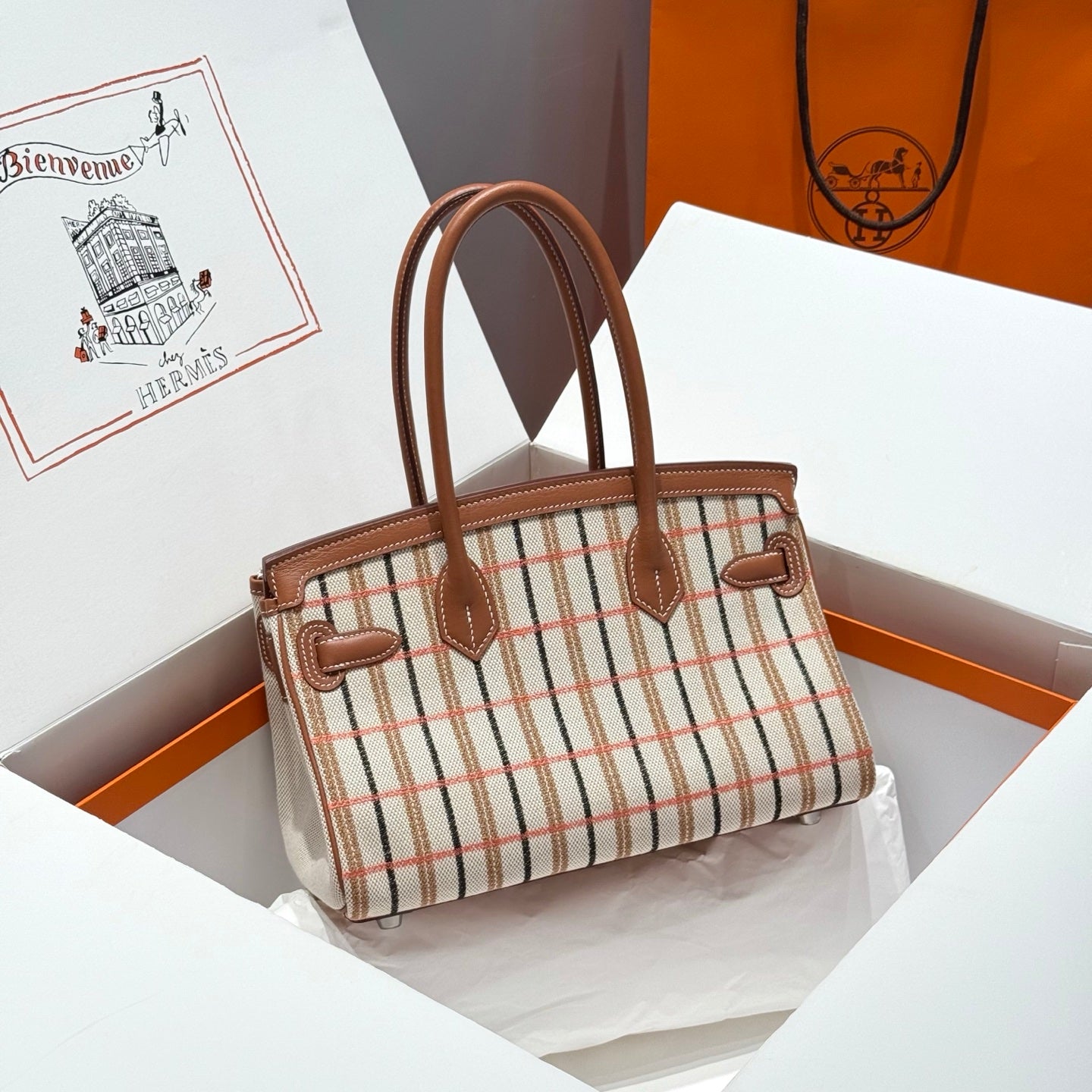 HM Shoulder Birkin 29cm Gold Brown Swift Cowhide Toile H Shw 249926
