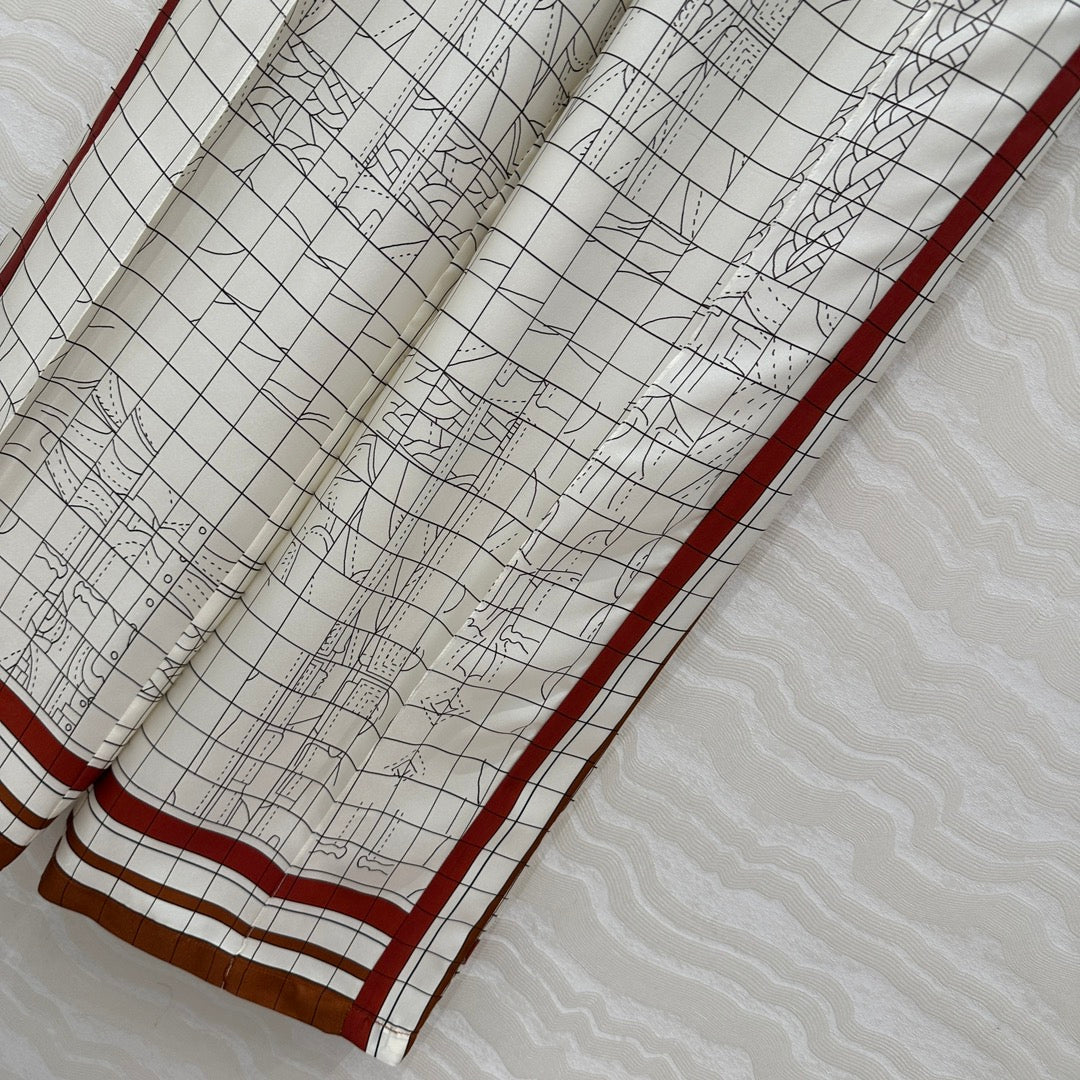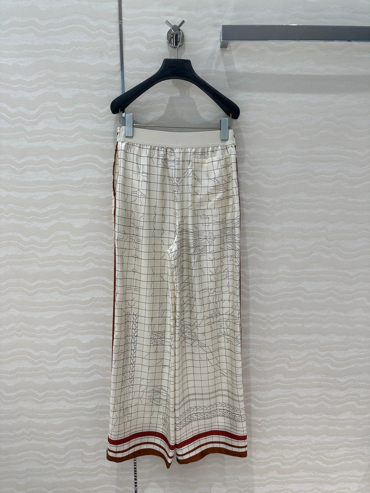 Hm 25 Coaching Deja Vu Wide-leg Straight Pants White Red Silk