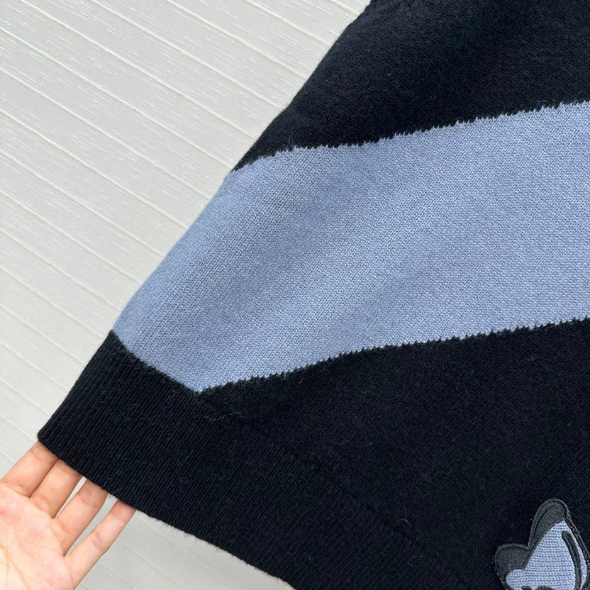 HM Embroidered Logo Vest in Black and Blue Cashmere