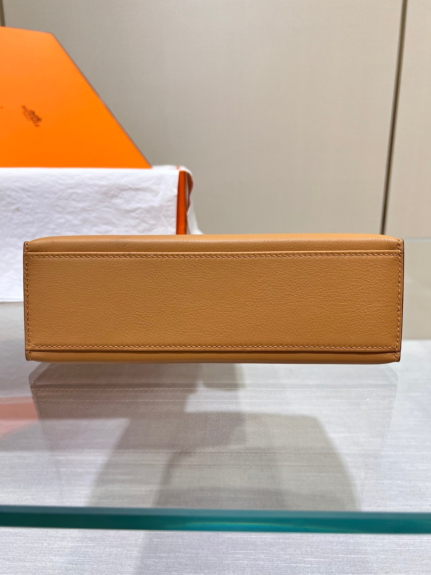 HM KELLY POCHETTE 22CM BROWN SWIFT GOLD HARDWARE