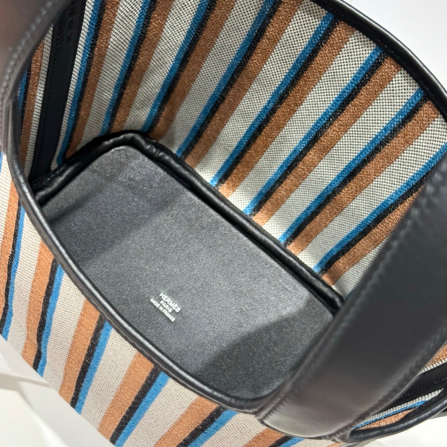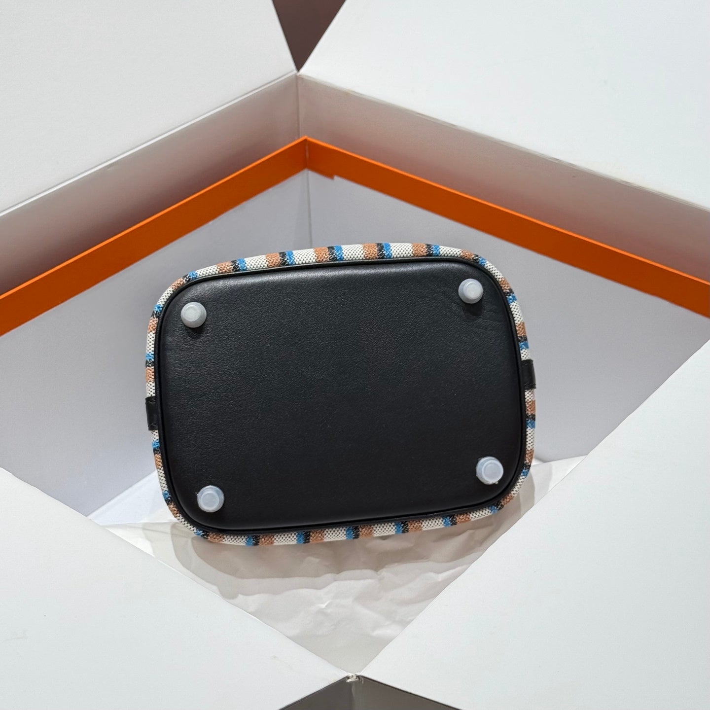 Picotin Lock 18 Black Swift Calfskin Multicolor Canvas