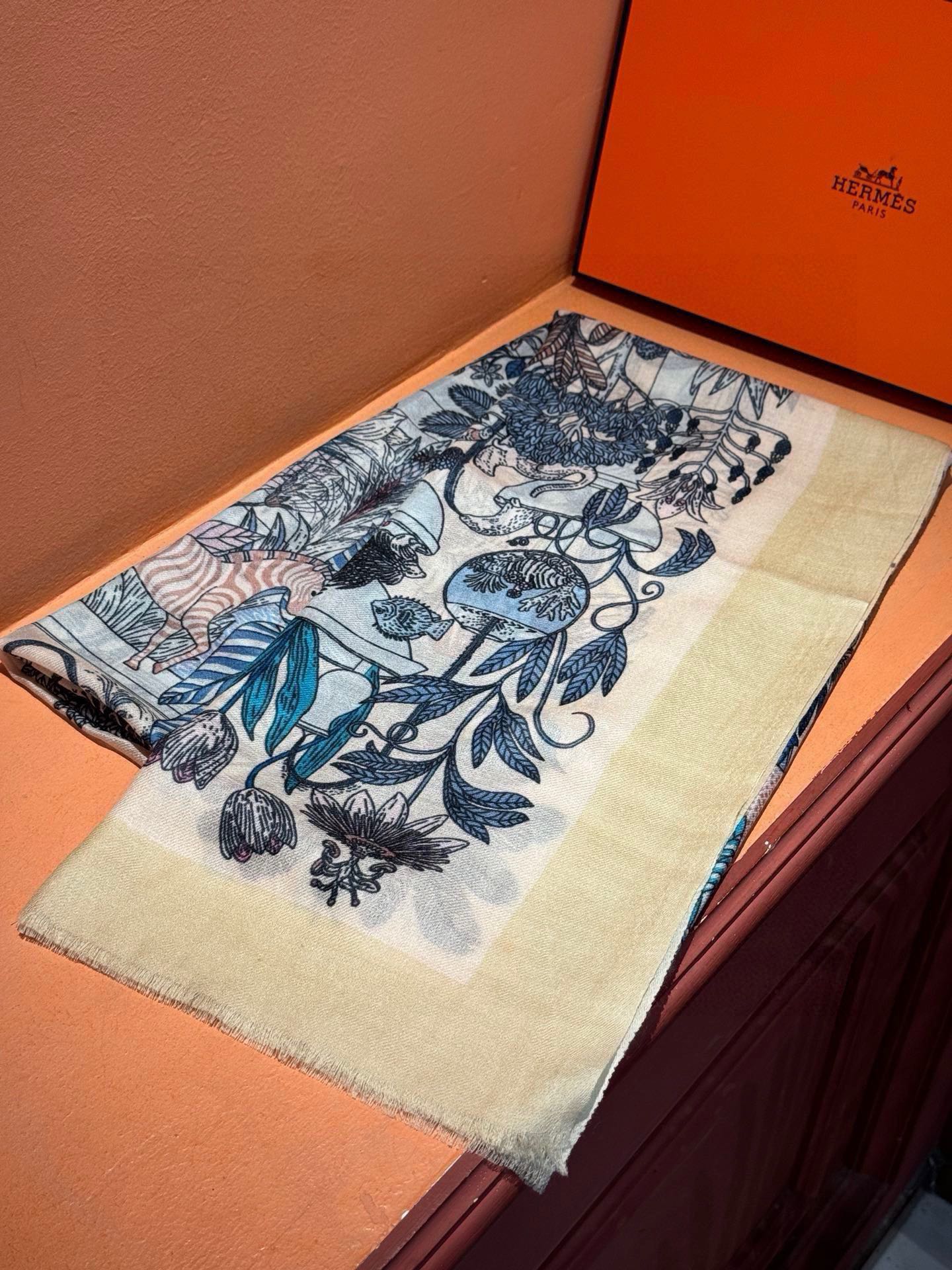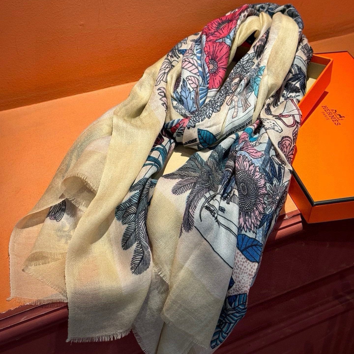 EXOTIC PARADISE CASHMERE SCARF 200 CM WHITE MIX COLORFUL CASHMERE