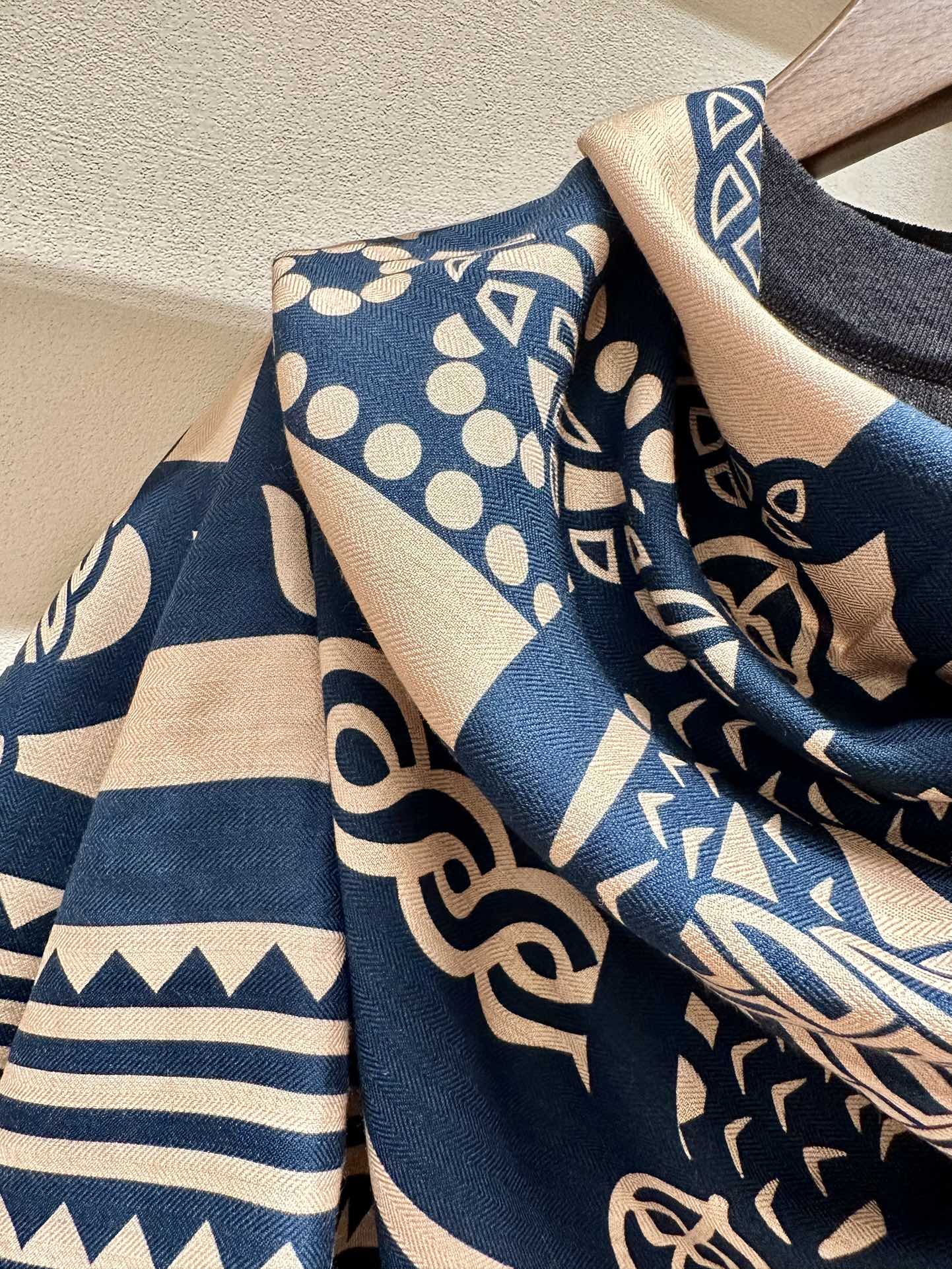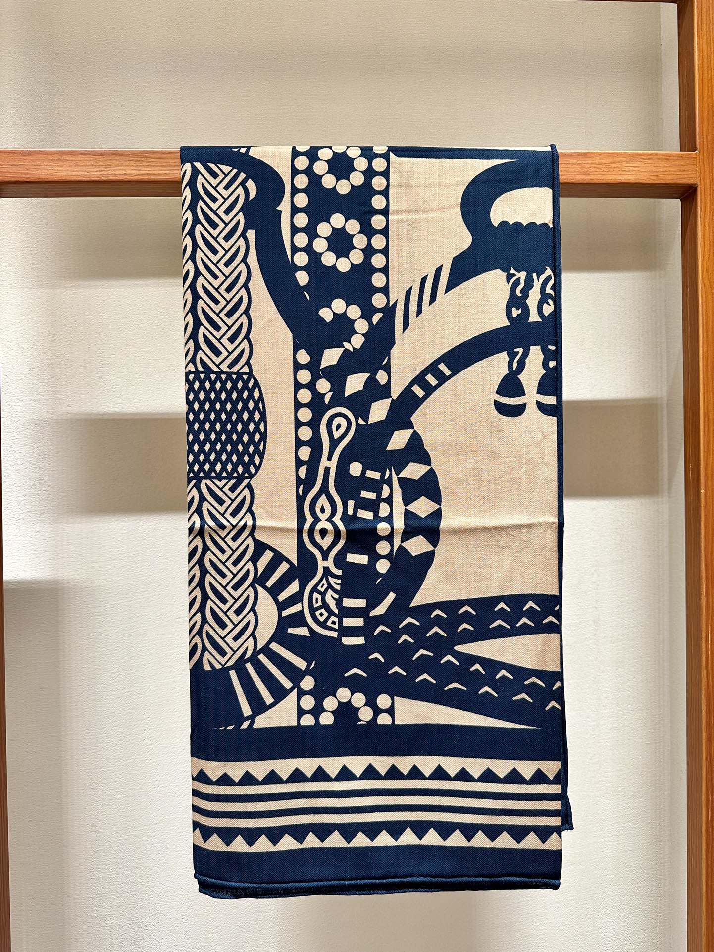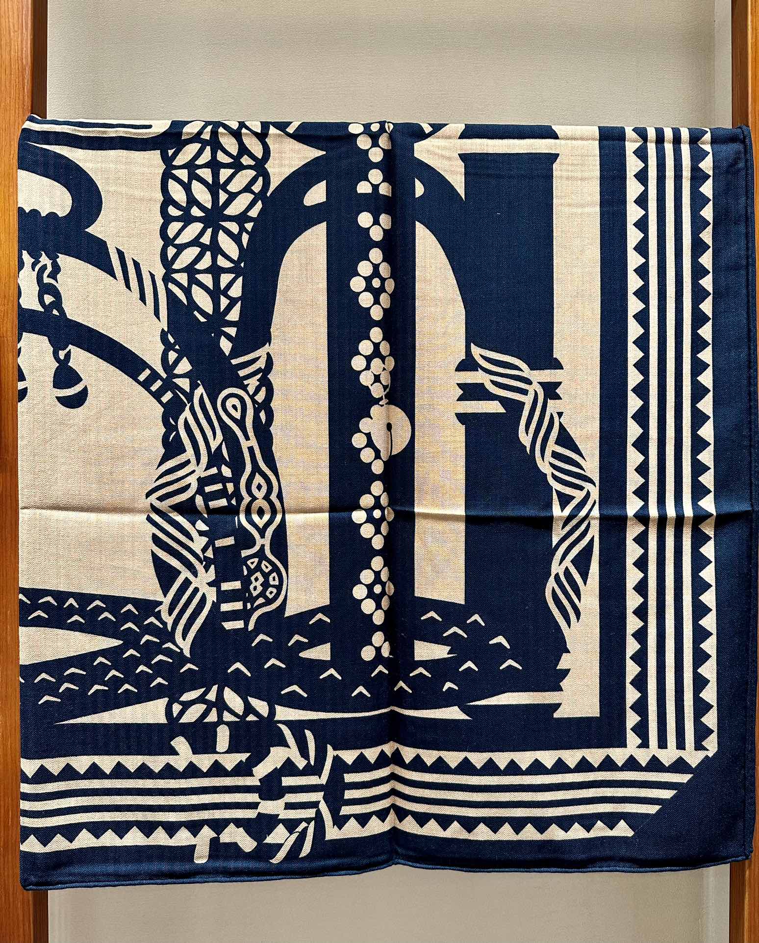 Fantaisie d'Etriers Shawl 140 CM Navy Blue Silk