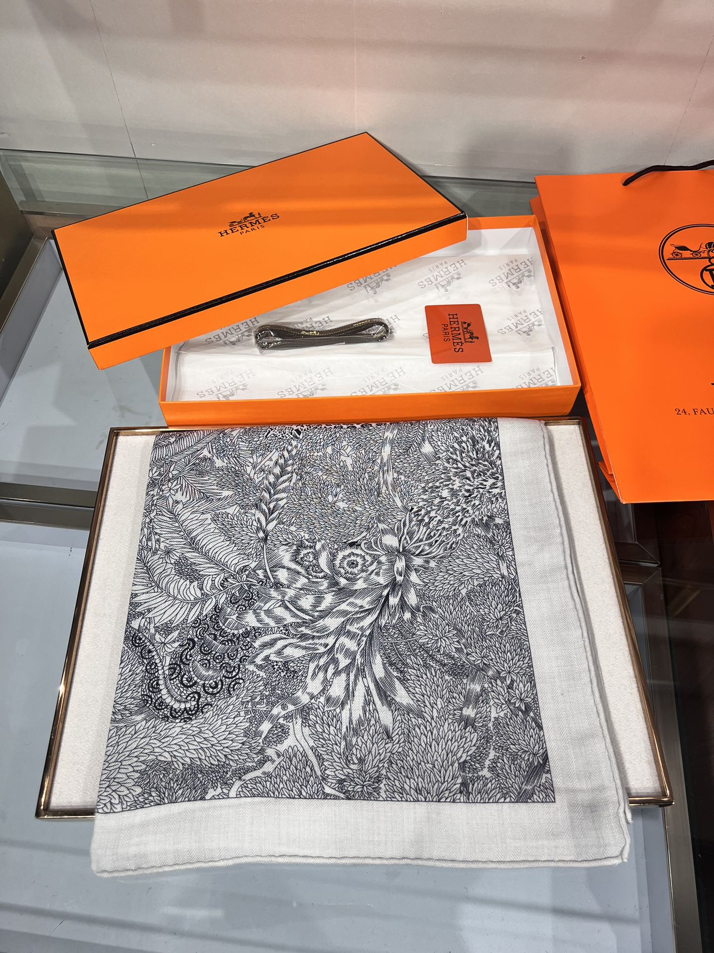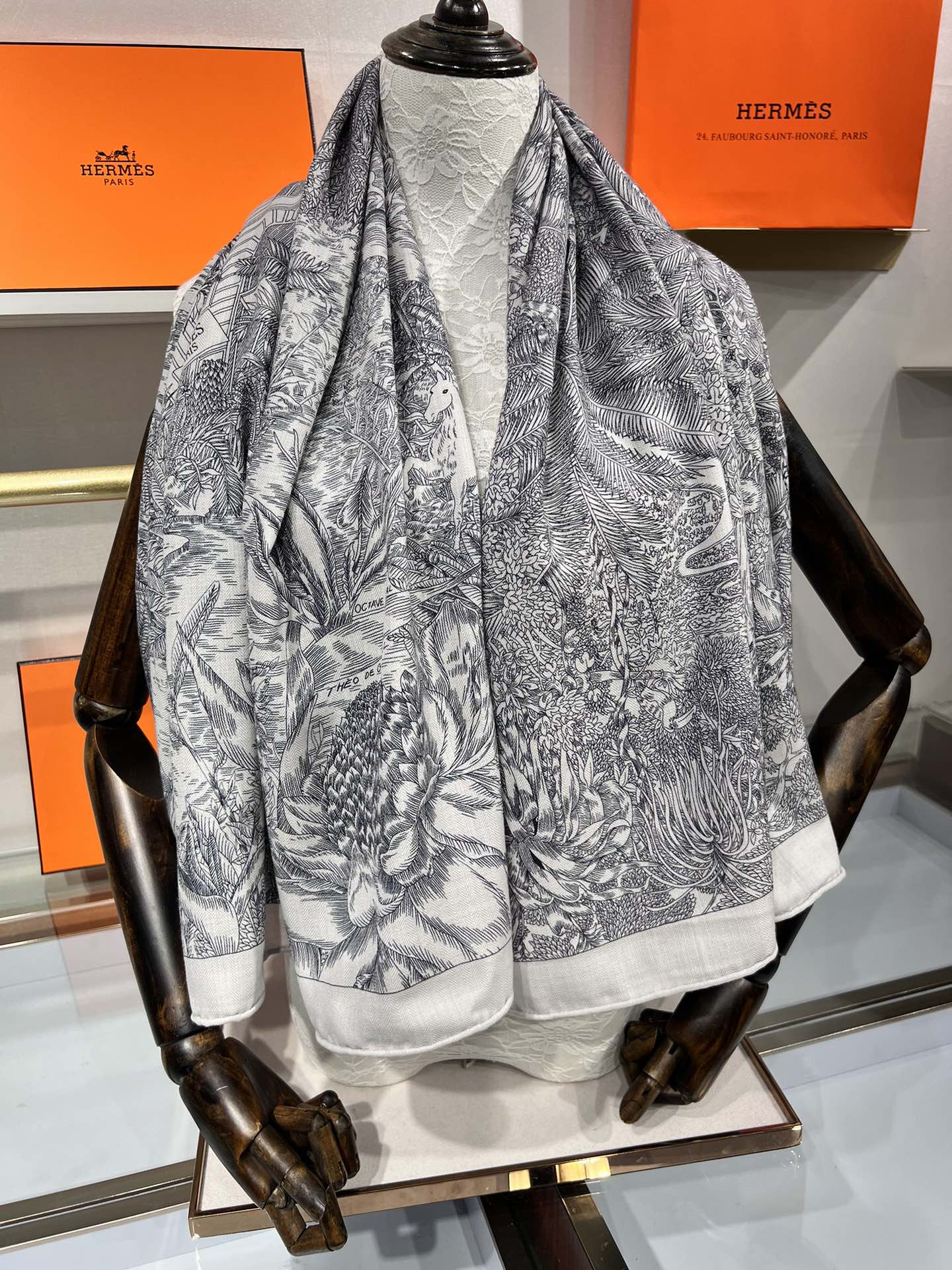 Faubourg Tropical Scarf 135 CM Grey White Cashmere And Silk