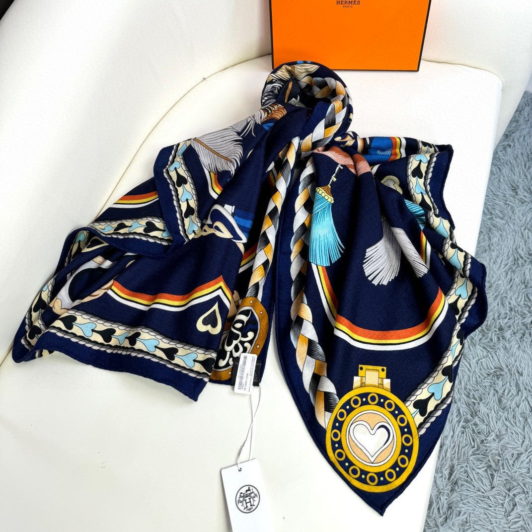Harnais De Coeur Scarf 135 CM In Black Colorful Cashmere And Silk 381095