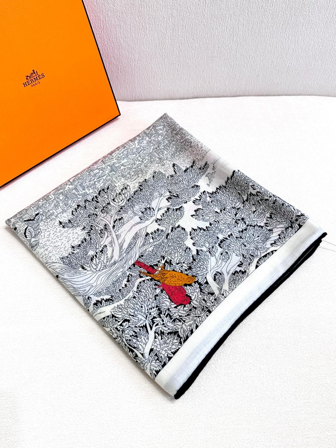 Retour A La Nature Shawl 135CM In Black White Colorful Cashmere And Silk