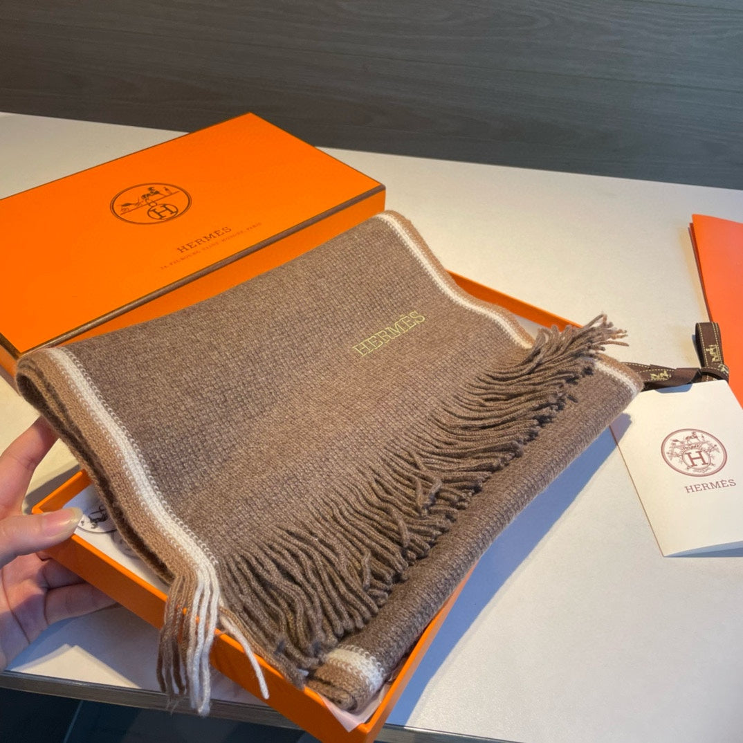 SCARF 180 CM IN MEDIUM BROWN MIX WHITE CASHMERE 376517