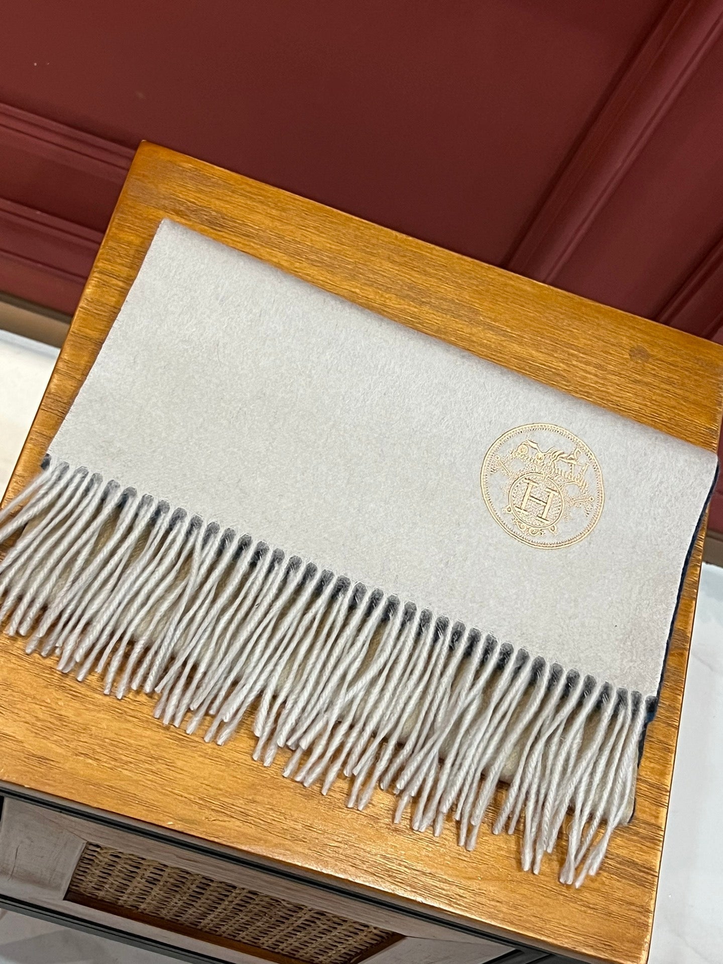 Scarf 190 CM In White Beige Mix Black Blue Cashmere