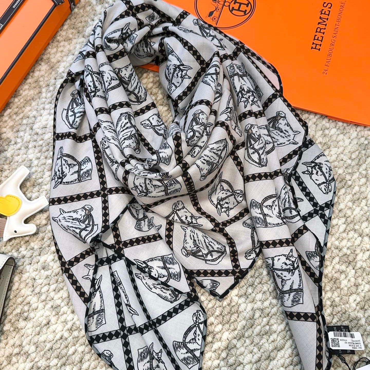 Scarf 140 CM In Black Mix White Cashmere And Silk 335765