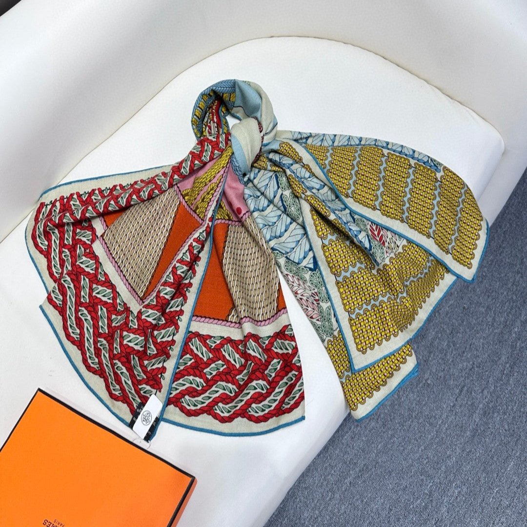 Scarf 180 CM Blue Green Colorful Mashmere And Silk 403886