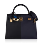 HM KELLY 32cm BLACK AND BLUE EPSOM LEATHER GOLD HARDWARE