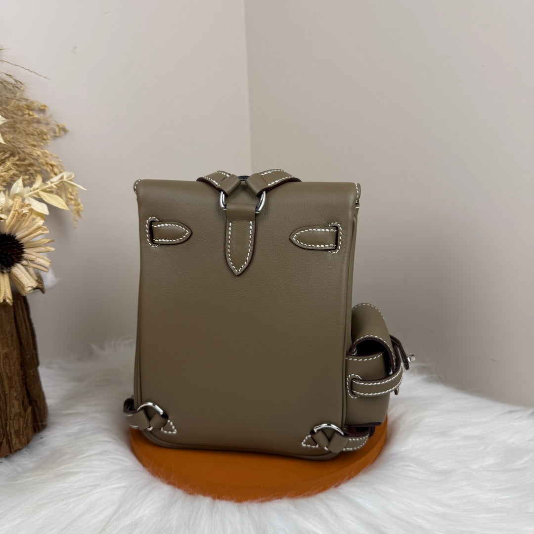 HM Kelly Jump Backpack Taupe Brown Cowhide Sliver Hardware 270042