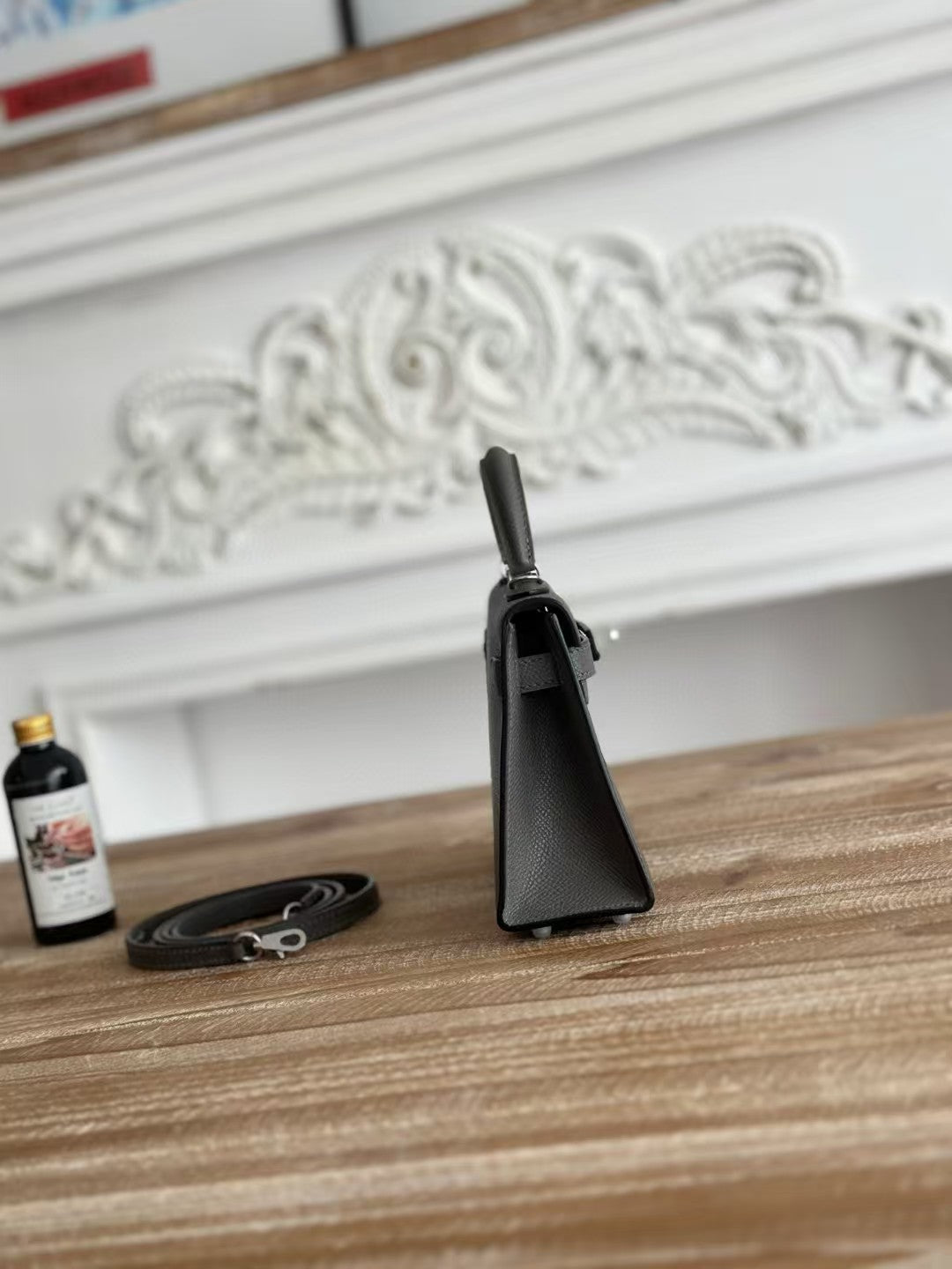 HM Mini Kelly 19cm Charcoal Epsom Silver Hardware