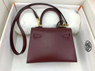 KELLY MINI 20 BAG IN WINE RED SMOOTH CALFSKIN WITH GOLD HARDWARE (MADE - TO - ODER)