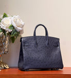 KELLY SELLIER 25 BAG IN SPACE BLUE OSTRICH LEATHER WITH SILVER HARDWARE (MADE - TO - ODER)