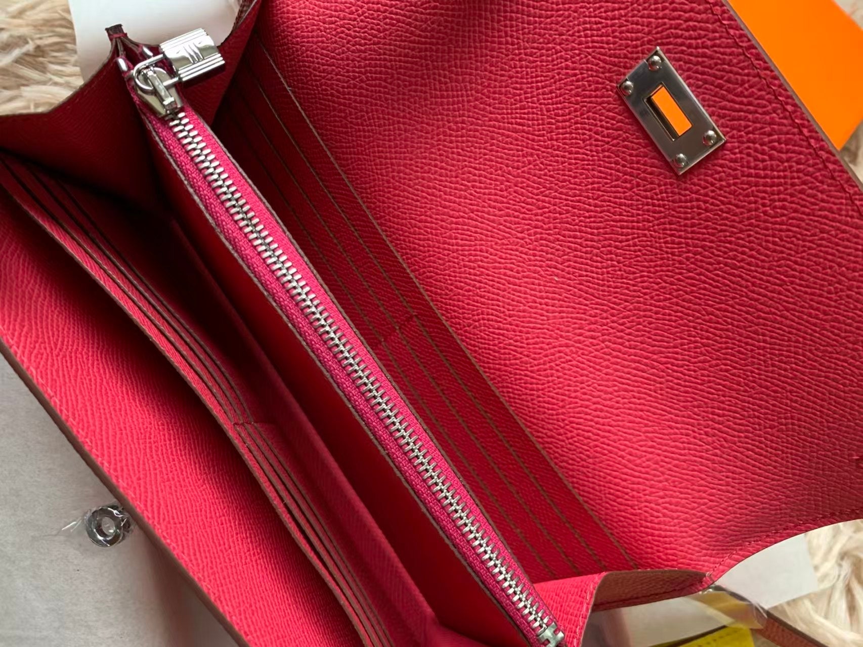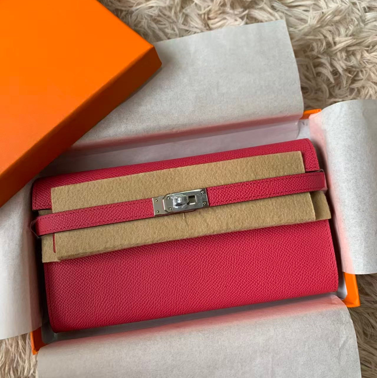 kelly to go wallet 20.5 pinkish-red epsom silver hardware