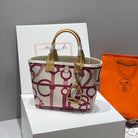 STEEPLE 28 BAG IN OFF-WHITE MIX PERSIAN PLUM RED CANVAS AND BROWN SWIFT LEATHER
