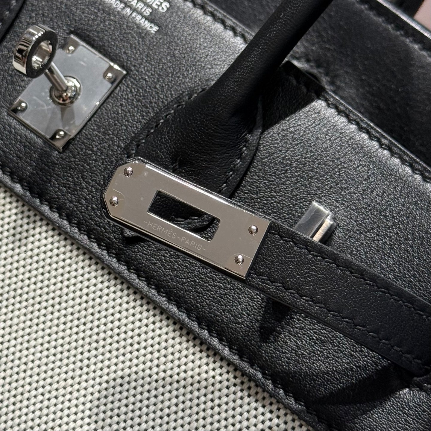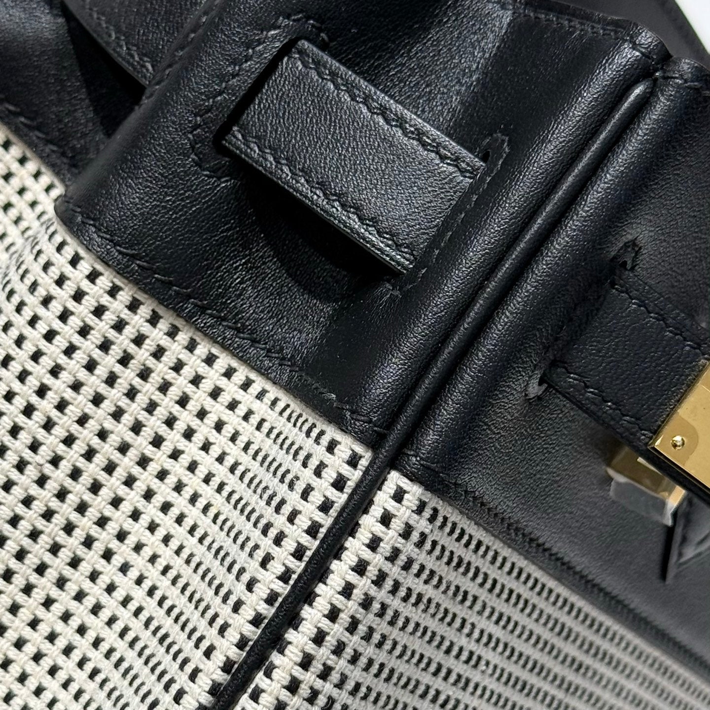 HM Birkin 25cm Black Swift Cowhide With Waffle Panda Black and White Canvas Fabric Shw 249985
