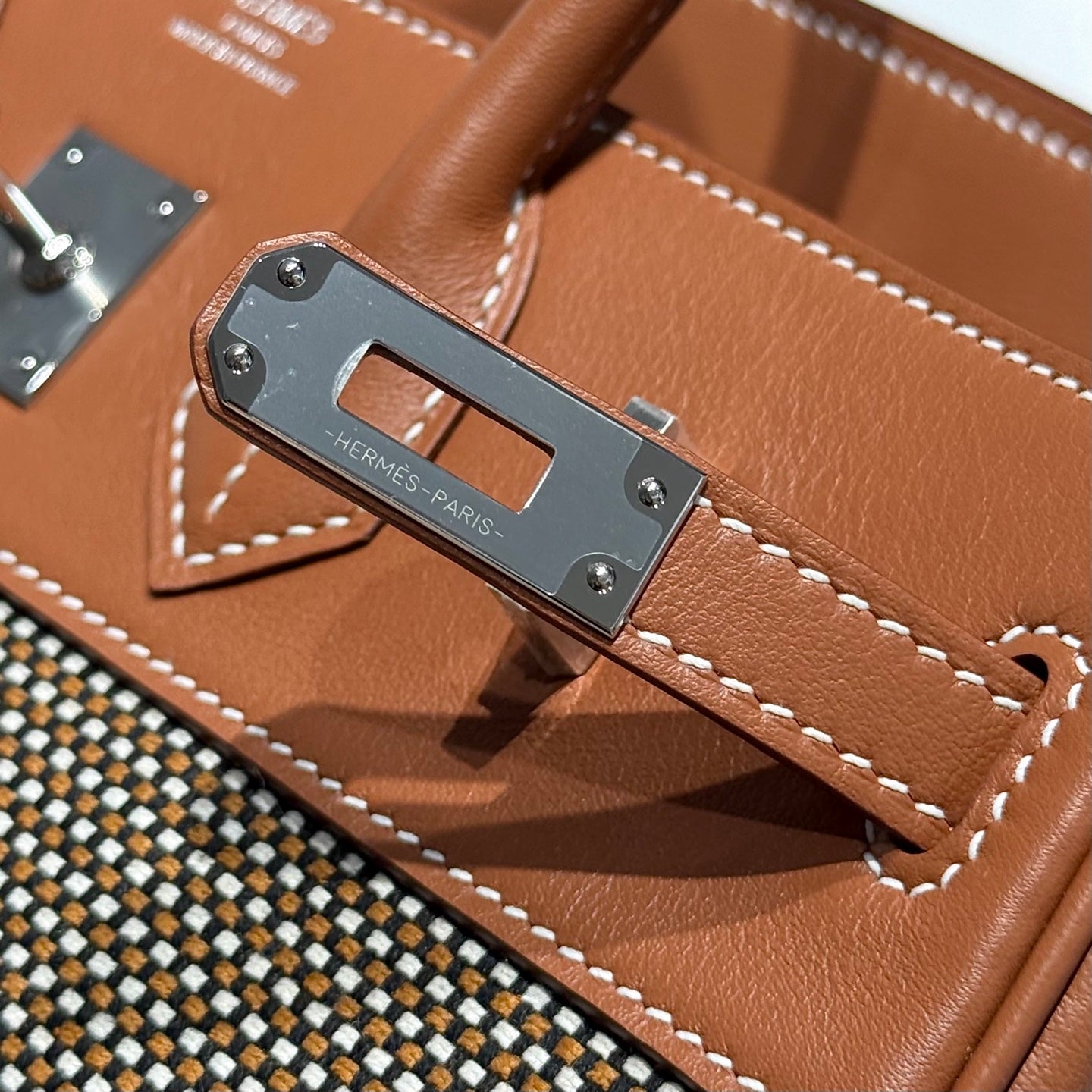 HM Birkin 25cm Golden Brown Swift Cowhide With Waffe Brown Canvas Fabric Shw 249988