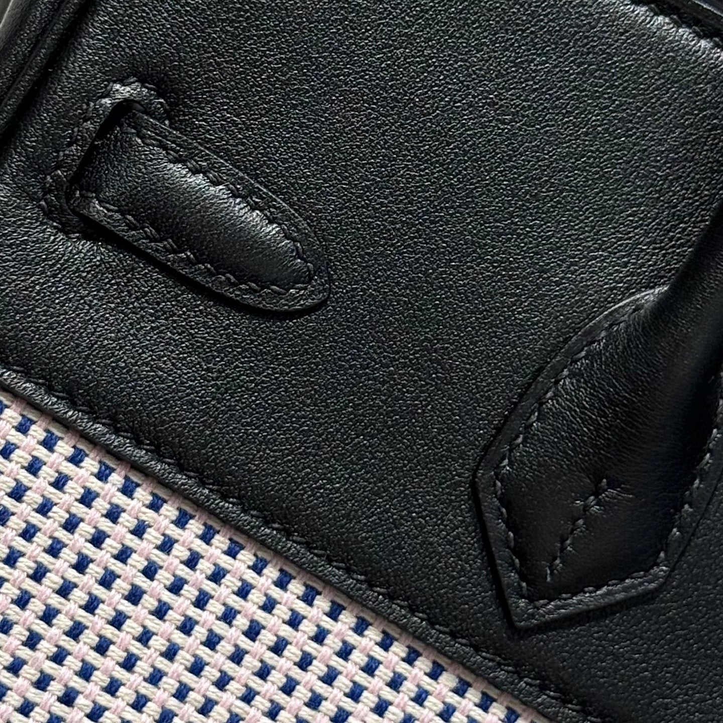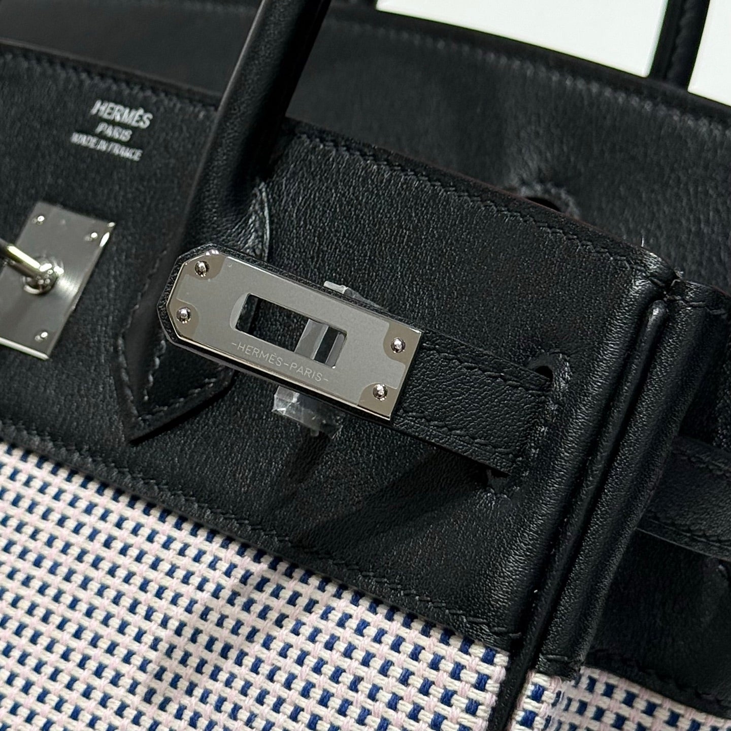 HM Birkin 25cm Black Swift Cowhide With Waffle Light Pink Canvas Fabric Shw 249984