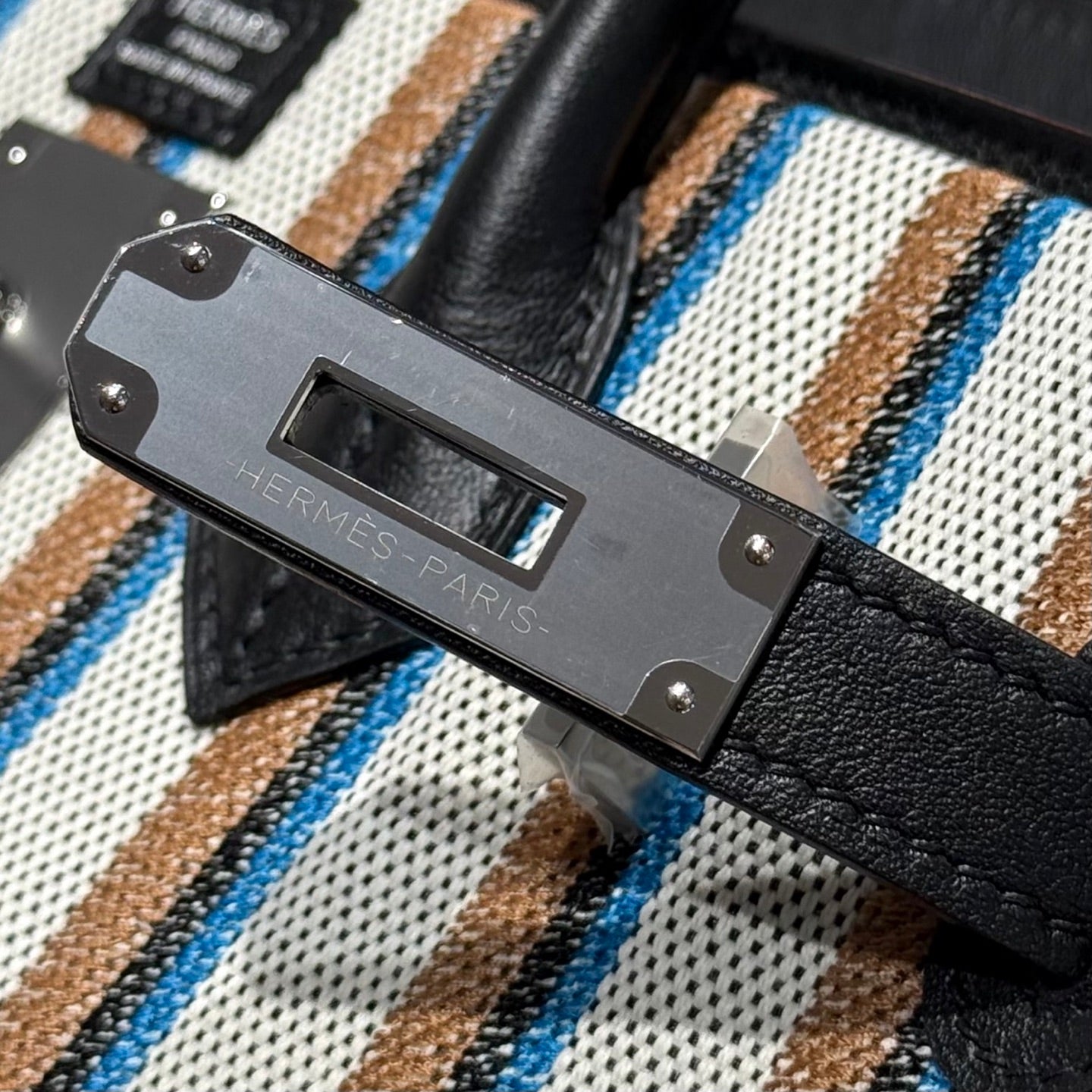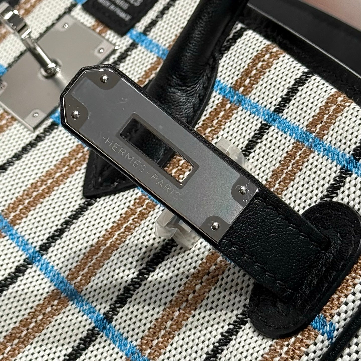 HM Birkin 25cm Black Swift Cowhide With Black White Checkered Canvas Fabric Shw 249986