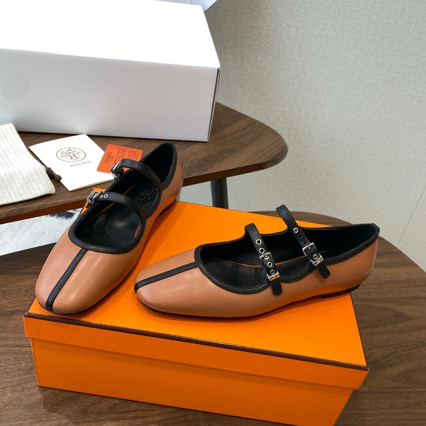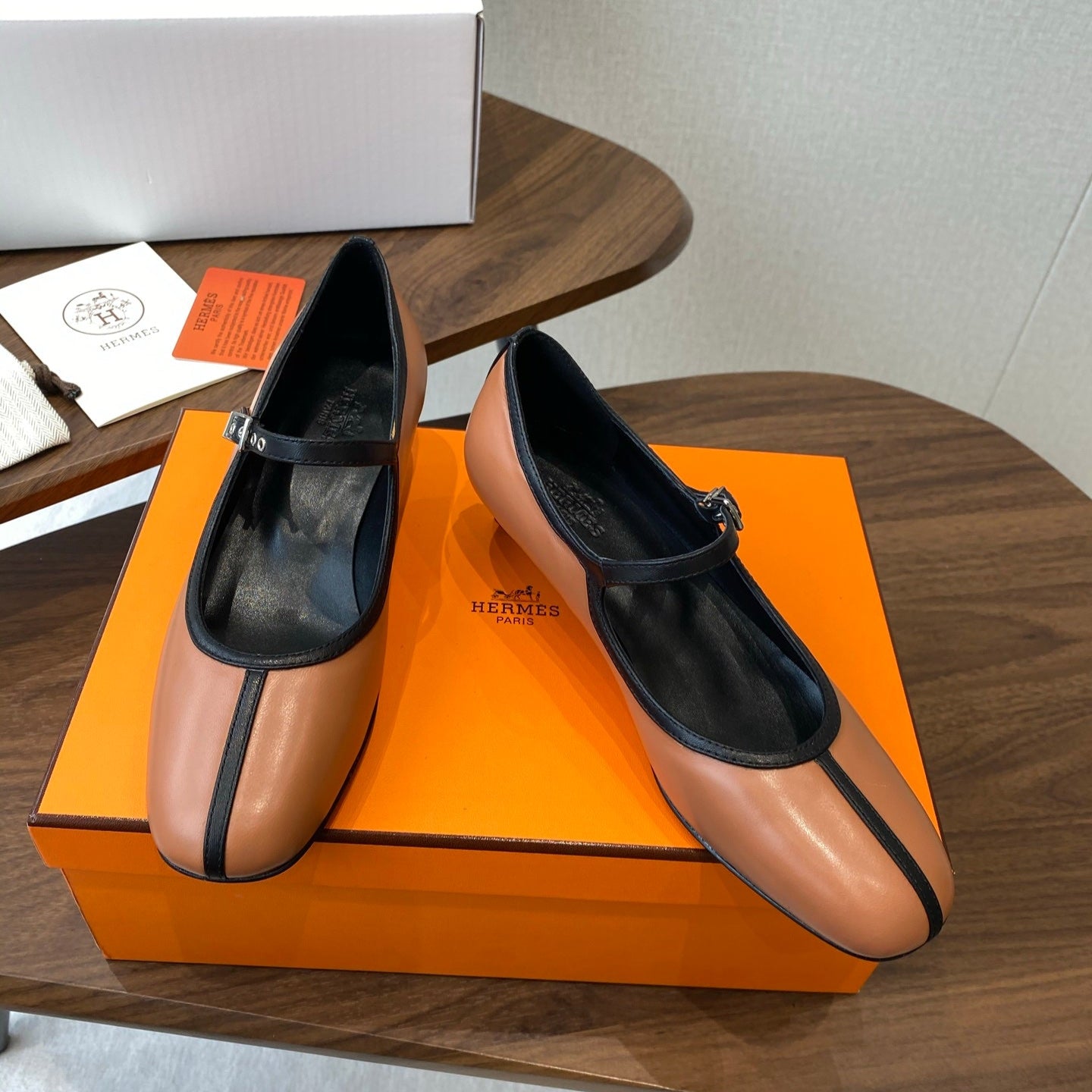 HM 25C Kelly Ballet Flat Brown Calfskin 208269