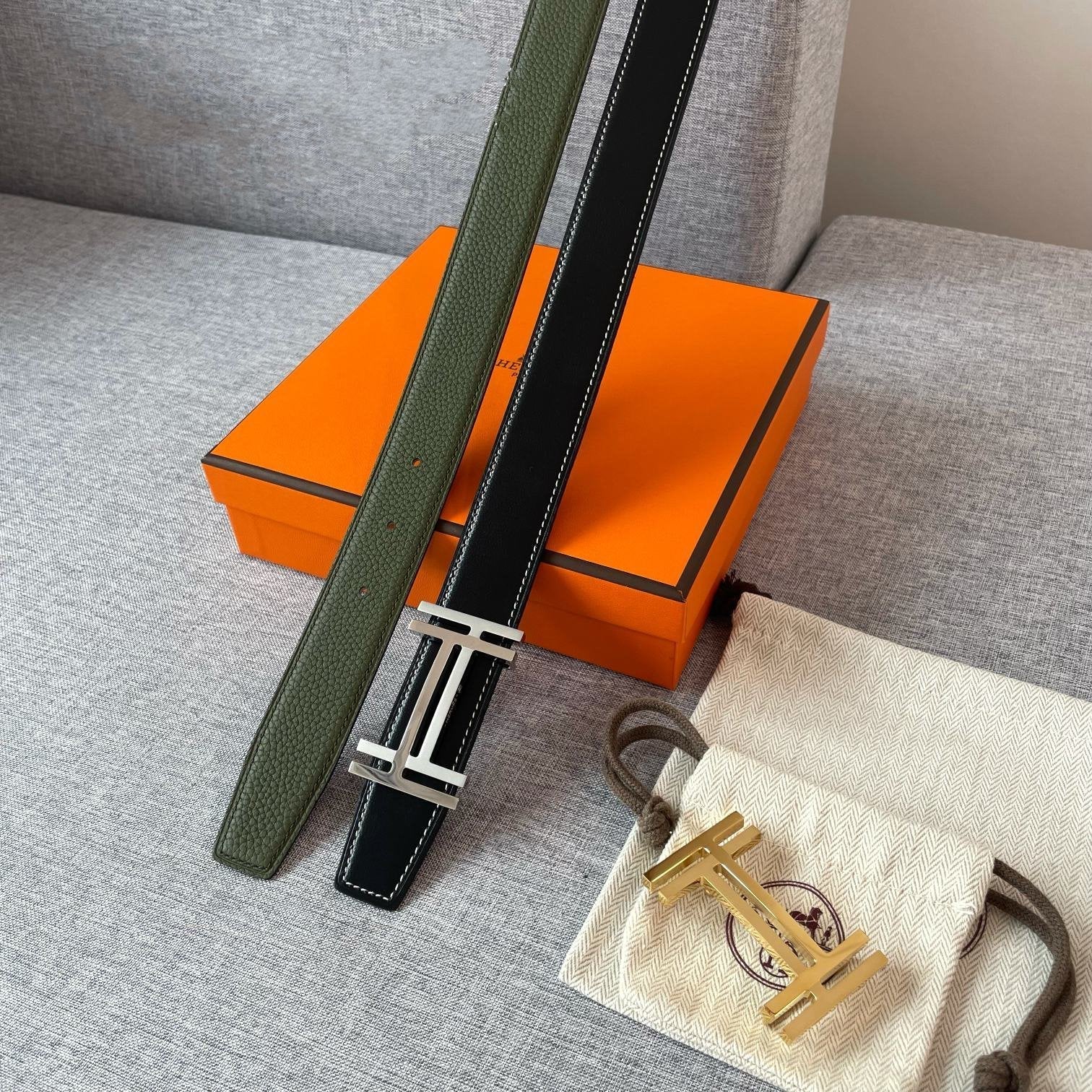 • H Buckle in permabrass plated metal.