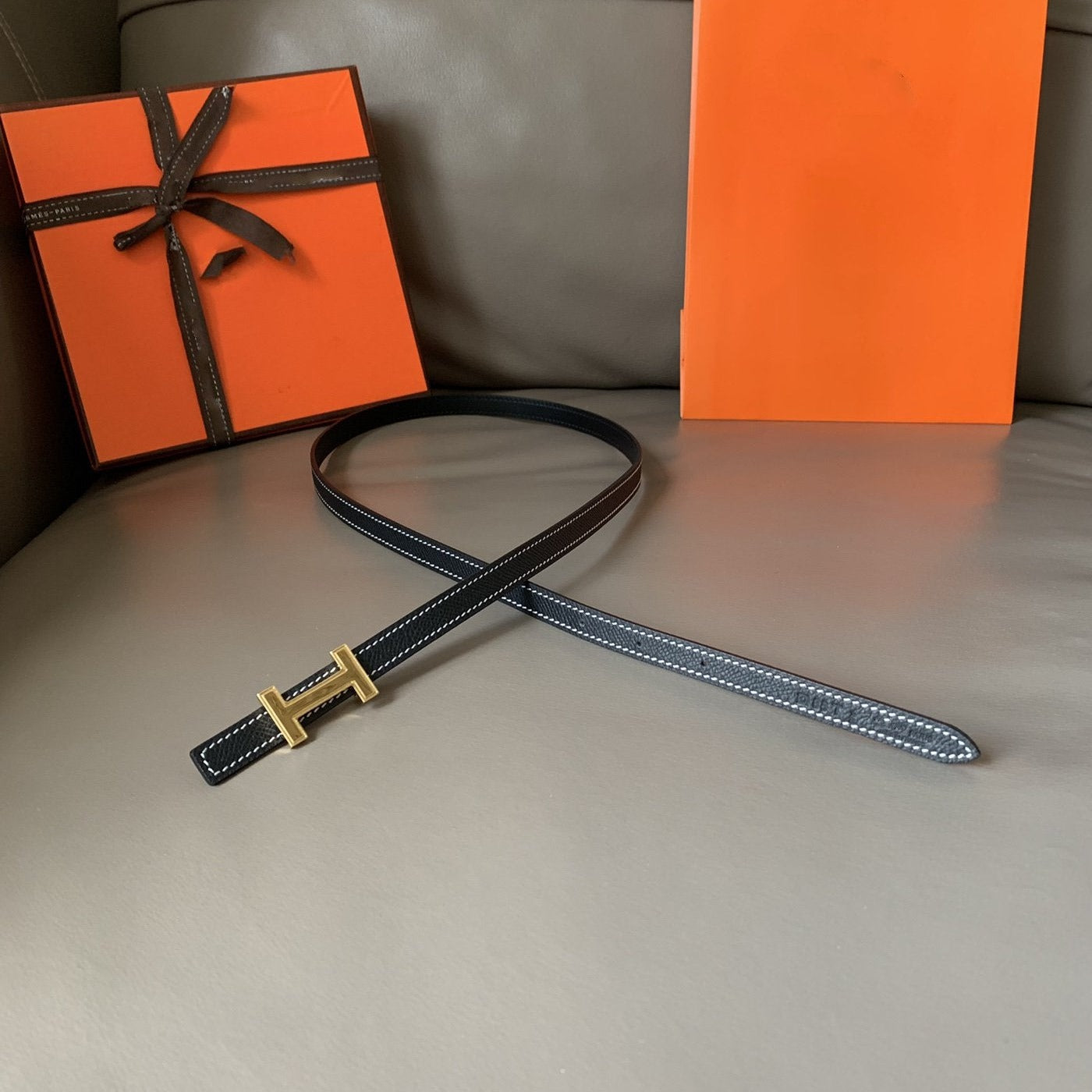 • H Buckle in permabrass plated metal.