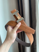 H CONSTANCE BELT 38MM SILVER BUCKLE BROWN CHOCOLATE LEATHER