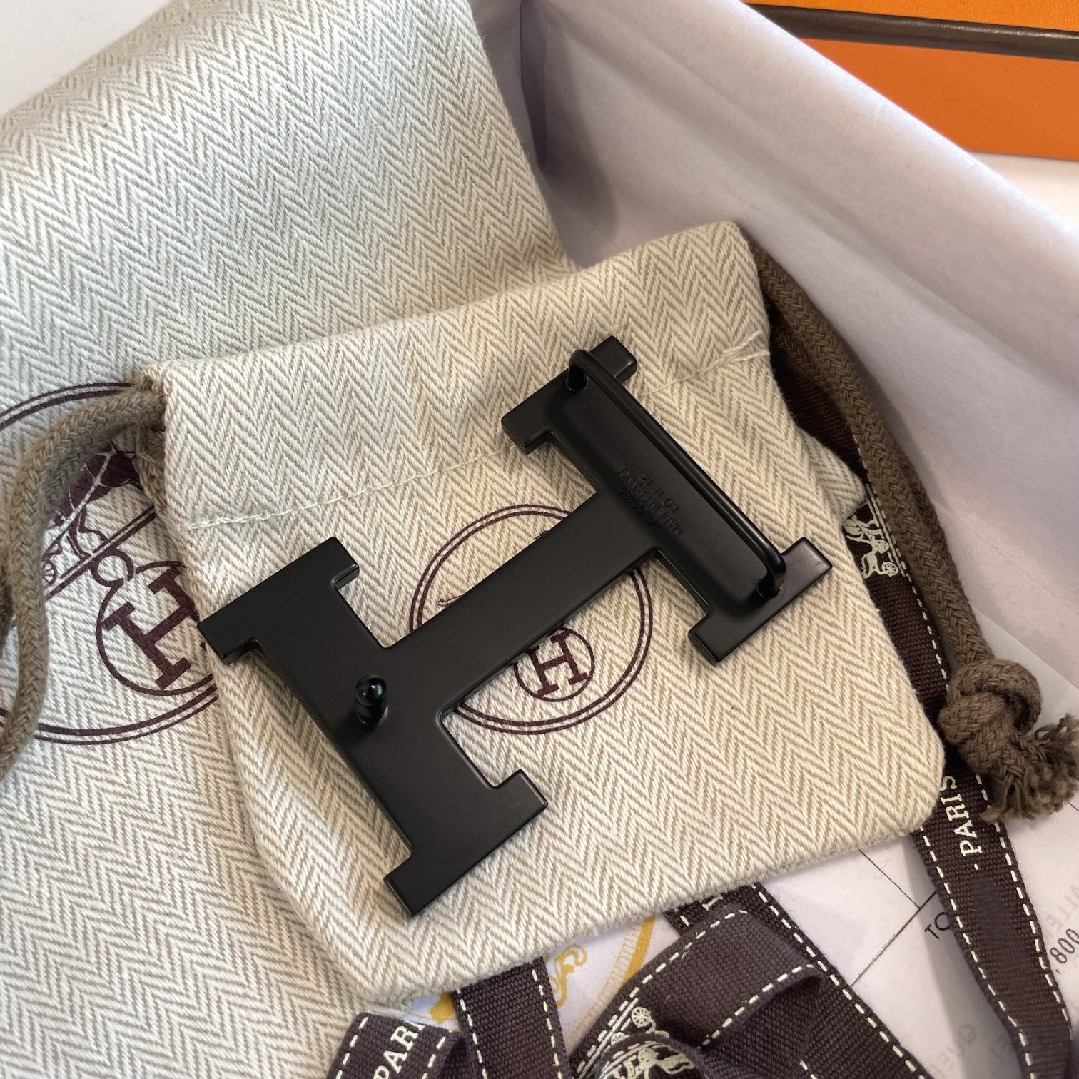 • H Buckle in permabrass plated metal.