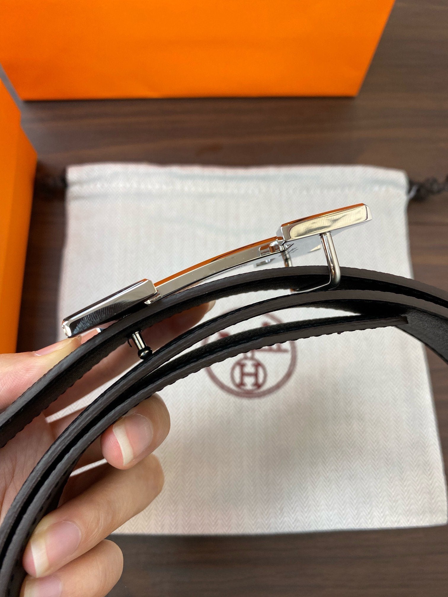 H CONTANCE BELT 38MM SILVER BUCKLE BLACK LEATHER