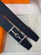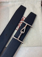 H JUMBO BELT 38MM SILVER BUCKLE DARK BLUE BLACK LEATHER