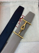 H JUMBO BELT 40MM GOLD BUCKLE DARK BLUE GREY LEATHER