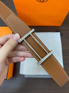 H RIDER RIVERSIBLE BELT 32MM SILVER BUCKLE PRUSSIAN BLUE GOLD LEATHER