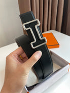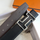 H TONIGHT BELT 38MM SILVER BUCKLE BLACK GRAPHITE LEATHER