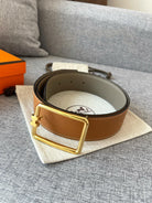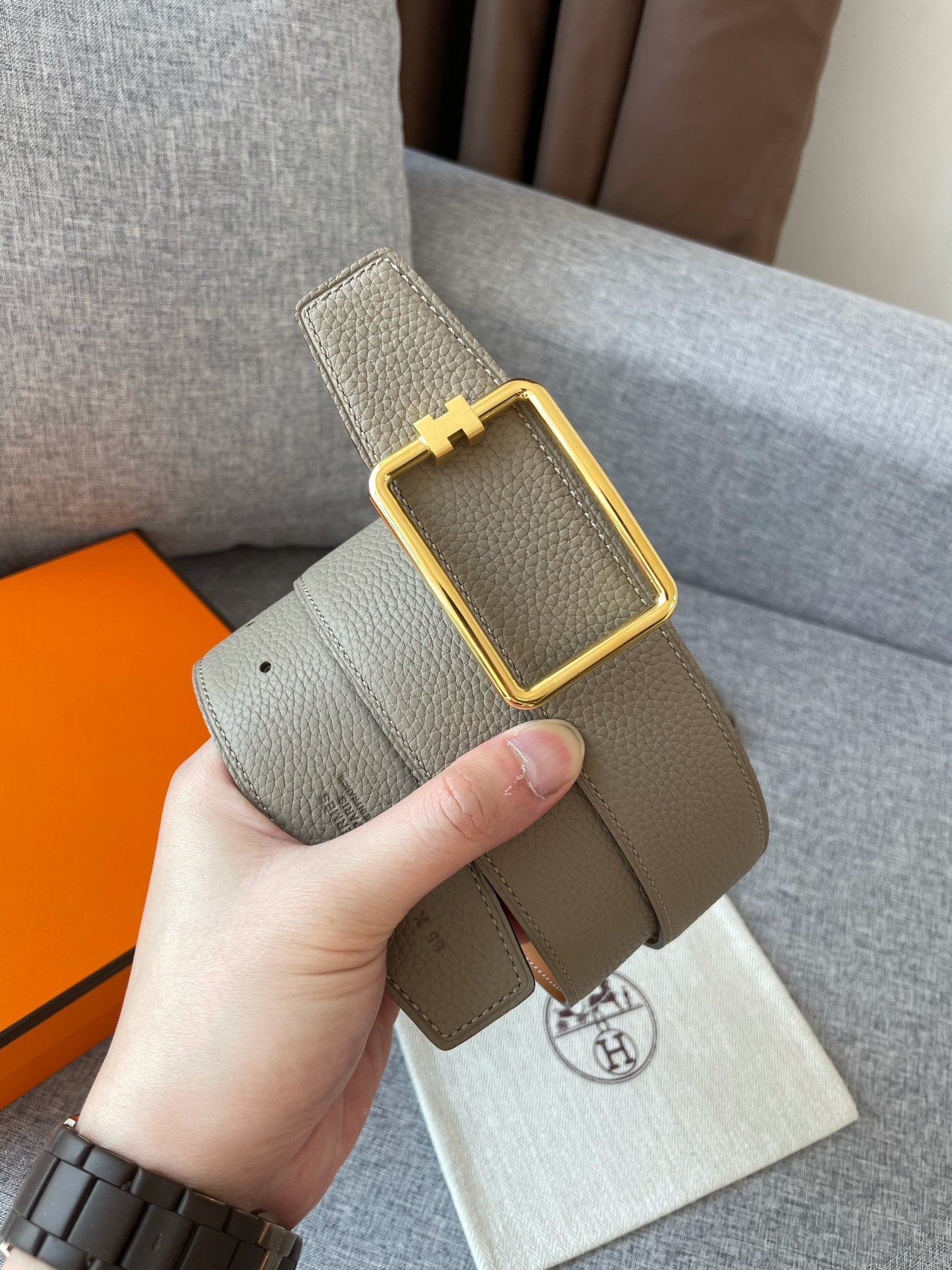 H TUBE BELT 38MM GOLD BUCKLE TIN GREY GOLD LEATHER