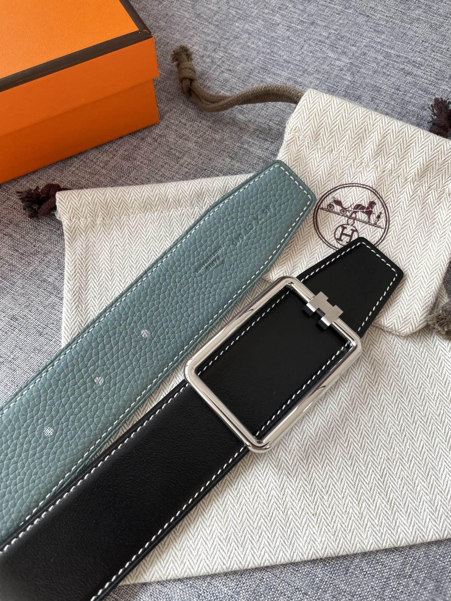 H TUBE BELT 38MM SILVER BUCKLE SKY BLUE BLACK LEATHER