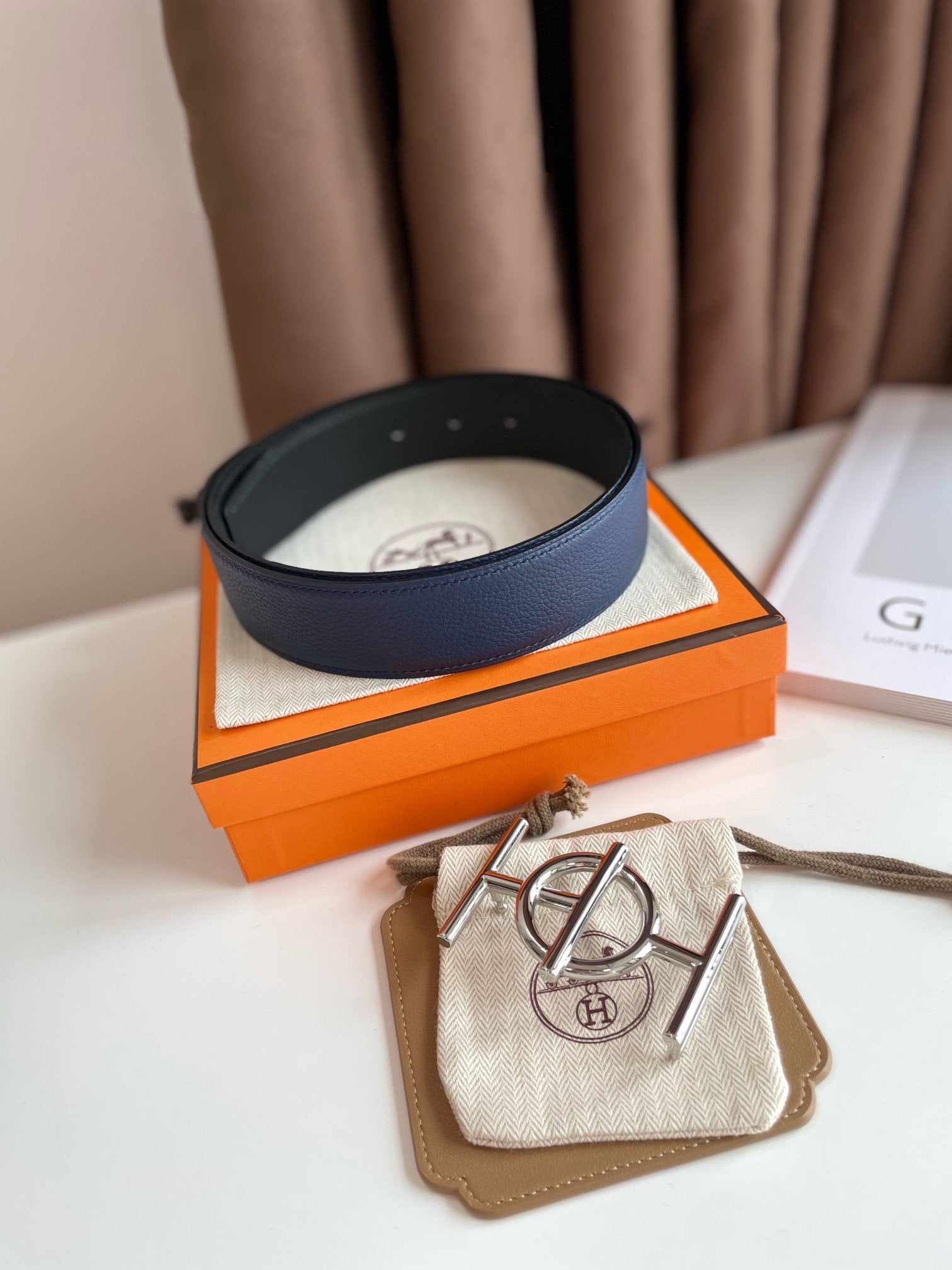 • H Buckle in permabrass plated metal.