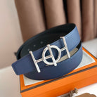 H ULYSSE BELT 38MM SILVER BUCKLE BLACK BLUE LEATHER