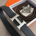 HM CONTANCE BELT 38MM SILVER BUCKLE BLACK LEATHER