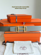 HM Gold Buckle 32mm Royal Belt Gray Brown Leather 188423