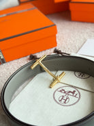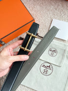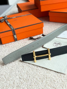 HM Gold H d'Ancre Belt Meyer Gray Leather 187774