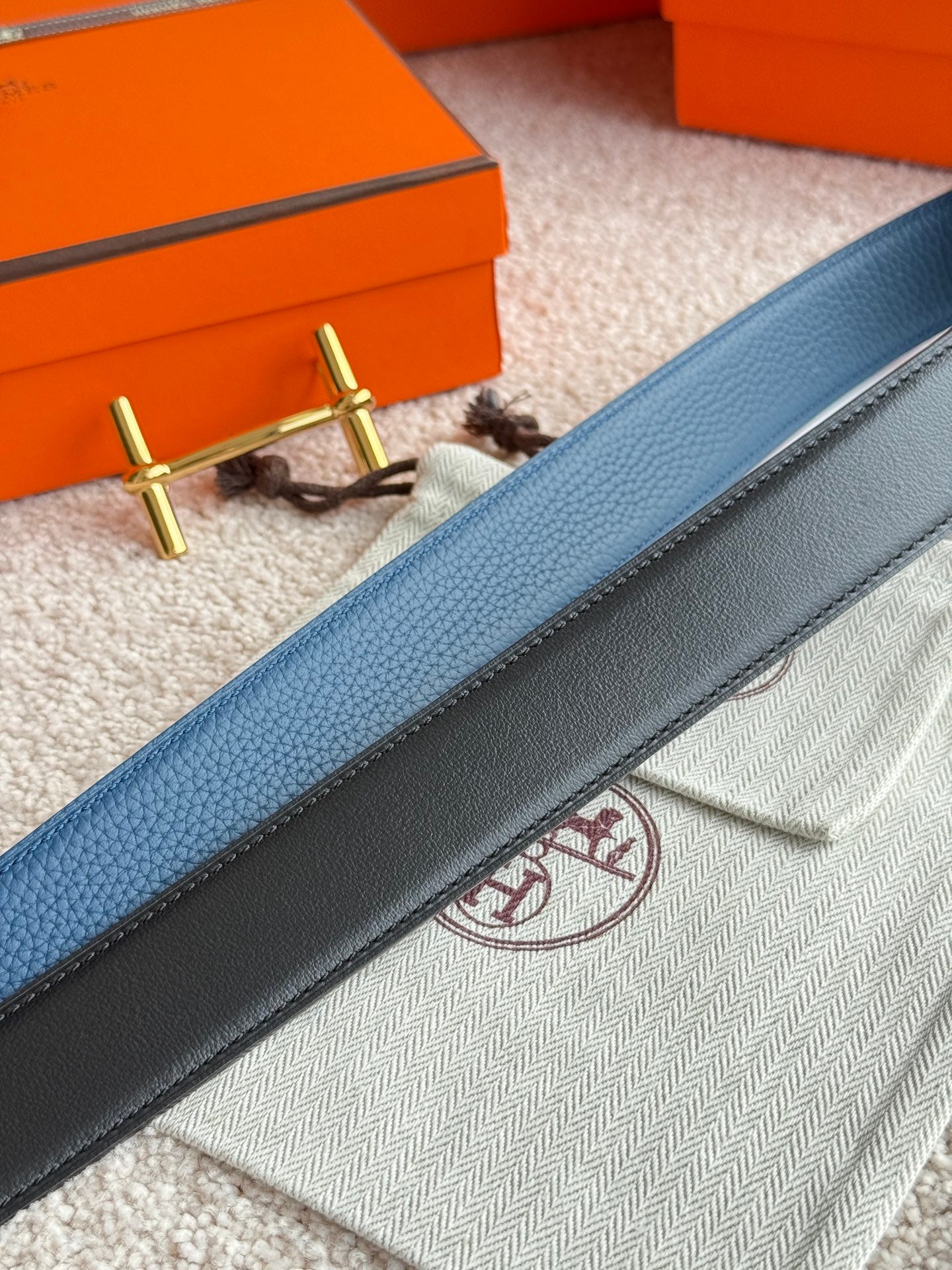 HM Gold H d'Ancre Belt Prussian blue Leather 187776