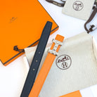 HM Infini Reversible Belt 24mm Orange Epsom Silver Buckle