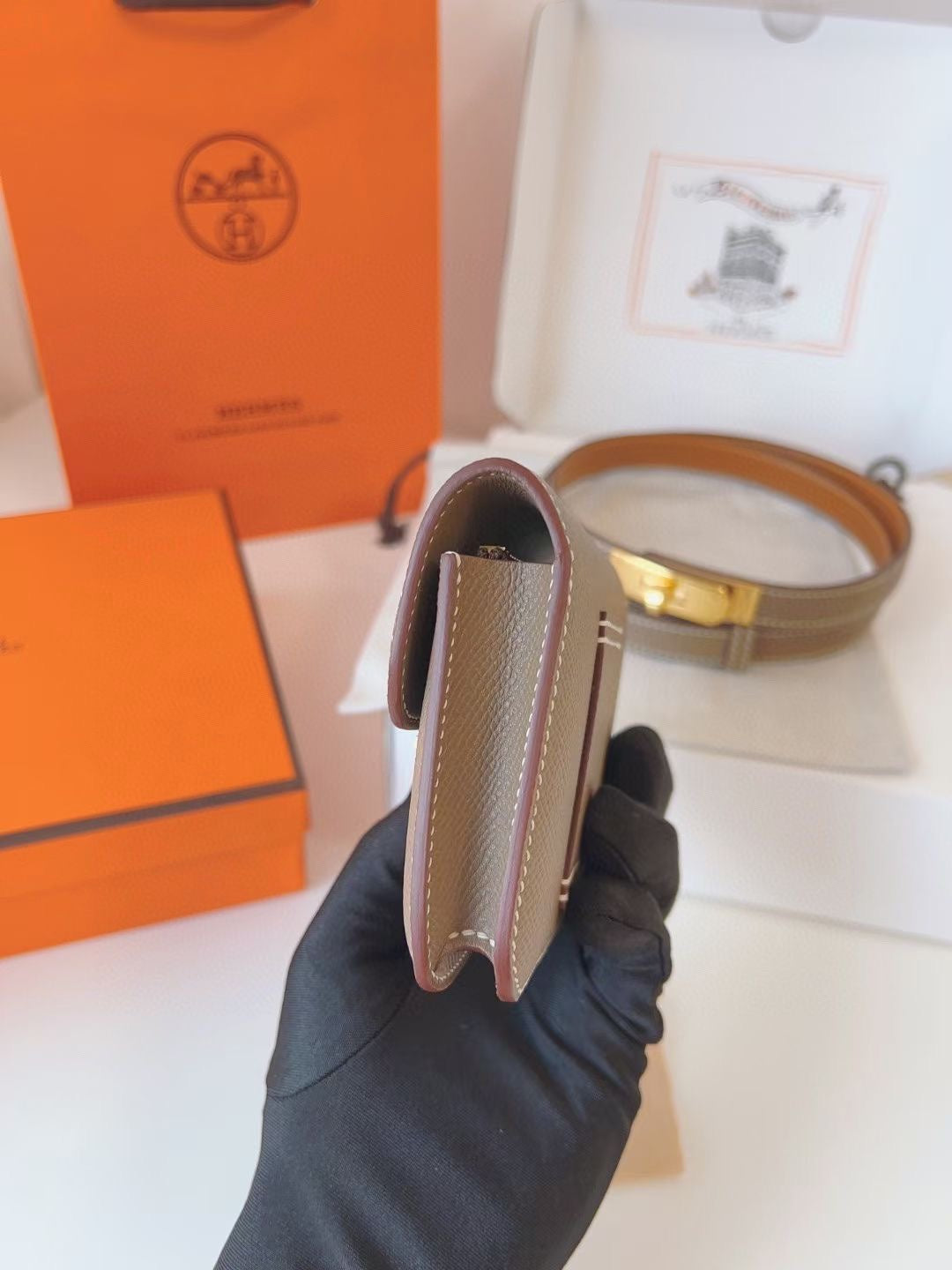 hm kelly belt 18mm with constance slim grey epsom gold hardware