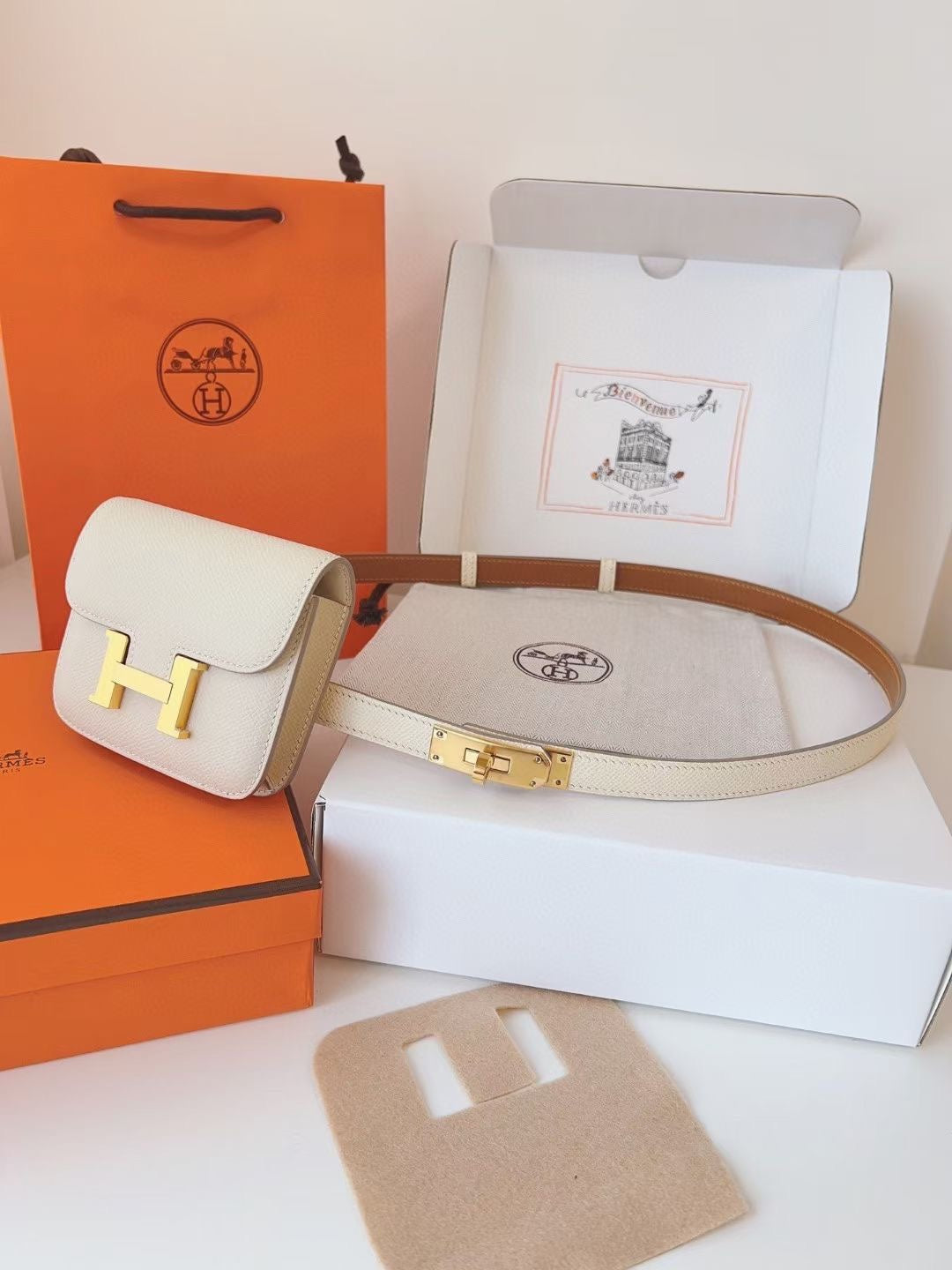 hm kelly belt 18mm with constance slim white epsom gold hardware