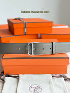 HM Silver 35mm Romain Belt Meyer Gray Leather 188402