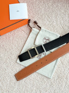 HM Silver Buckle Belt 38mm Brown Black Leather 187556